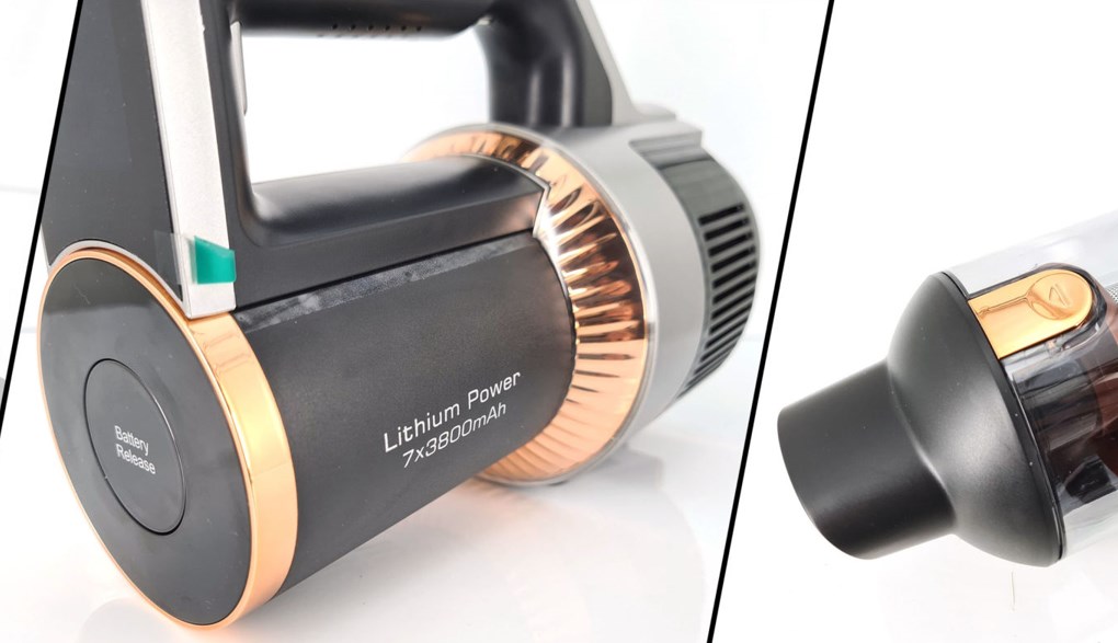 Malgré l’énorme batterie de 3800 mAh lithium, l’autonomie n’est pas démentielle avec le mode d’aspiration Turbo. Dans n’importe quel mode, n’espérez pas laver un appartement de 100m² avec une seule charge. En mode Turbo, vous tiendrez entre 20 et 30 minutes, et en mode ECO, un peu plus d’une heure. La charge n’est pas non plus des plus rapides, mais c’est rarement le cas pour les aspirateurs sans fil, comptez cinq heures pour une charge complète. Cet aspirateur est équipé d’une batterie amovible, ce qui vous permettra d’en acheter une deuxième (au prix de 120€ environ) pour doubler le temps d’utilisation.