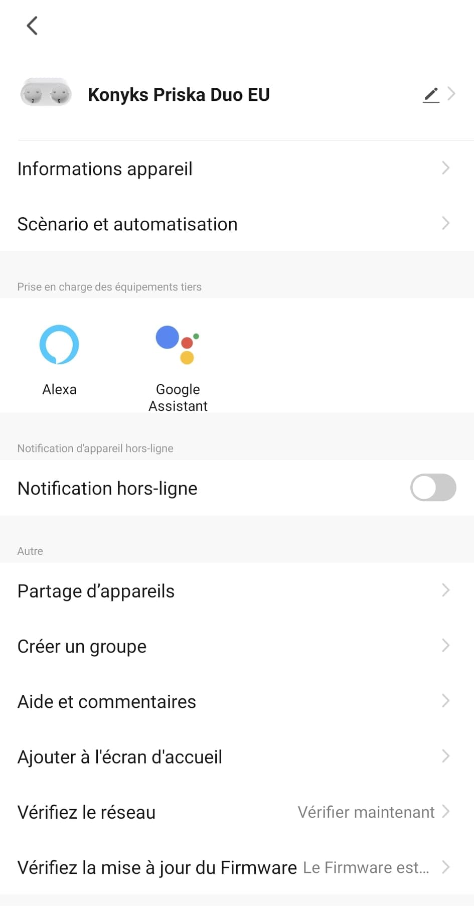 Audrey a également connecté la prise Konyks à Google Assistant (sur son iPhone XR). C’est avec un immense sourire qu’elle m’a annoncé que cela fonctionnait (sous-entendu qu’elle a réussi à le faire fonctionner) ! Tel Jacquouille la Fripouille dans « Les visiteurs », elle s’est amusée pendant plusieurs minutes à lancer des « Allumer interrupteur 1 », « Eteindre interrupteur 1 » pour allumer et éteindre un luminaire du salon.