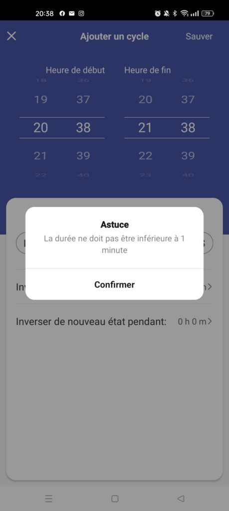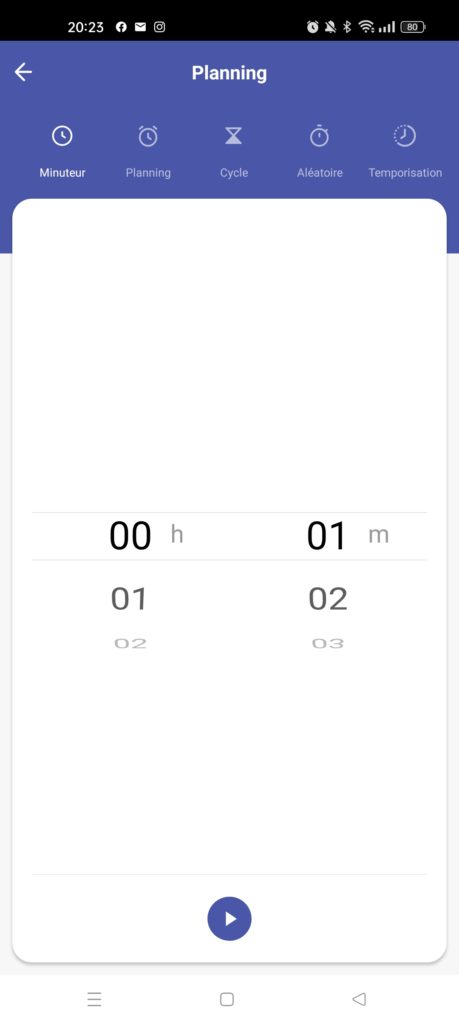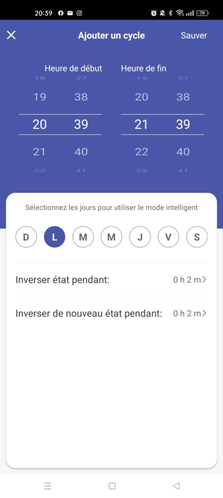 Créer un cycle : à mi-chemin entre le planning et le fonctionnement aléatoire, il permet d’allumer ou d’éteindre la prise par intervalle pendant une période donnée.