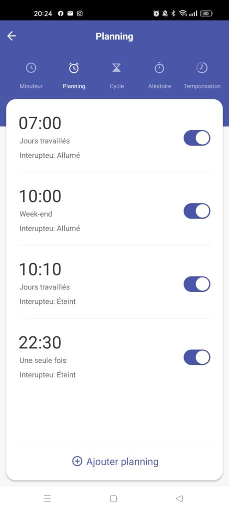 Définir un planning d’allumage et d’extinction : pratique pour gérer à la perfection le fonctionnement de certains appareils gros consommateurs d’électricité.