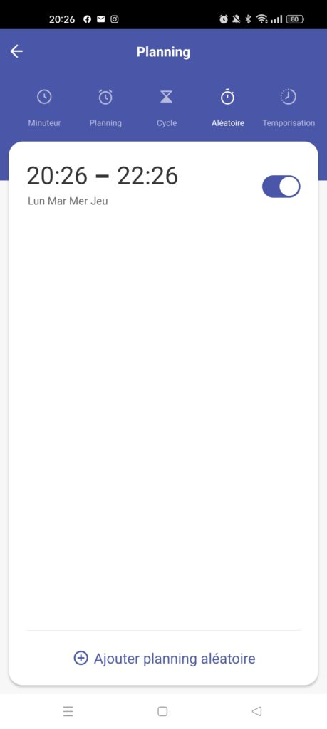 Définir un fonctionnement aléatoire : parfait pour simuler une présence pendant une sortie ou des vacances, en allumant la lumière ou en mettant de la musique
