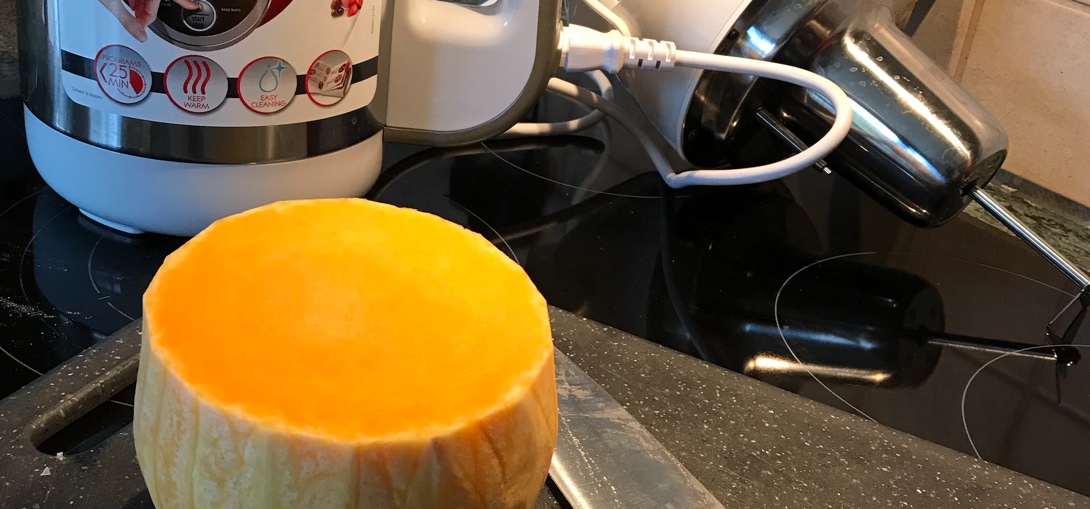 Nous avons tenté l’expérience d’un velouté de butternut (une moitié seulement), agrémenté de deux gousses d’ail et d’une simple échalote. Après vingt minutes, comme par magie, le mixer se met en marche, deux ou trois fois de suite. Rebelote, c’est prêt en un clin d’œil. Velouté à souhait, cette soupe nous a séduit par son onctuosité et son gout “pur légume sans adjuvant dont on ne connait pas l’origine”. Nous lui attribuons un plantureux 8.5/10, après avoir ajouté un peu de sel qui n’avait pas du tout été prévu à la cuisson.