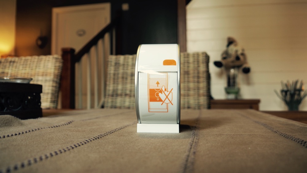 Un des points assez novateur est la possibilité de cacher l’objectif de la caméra avec votre smartphone. De cette manière, à l’aide d’un obturateur, vous êtes assuré que personne ne pourra vous espionner durant le repas du dimanche. Il est à noter que les périodes durant lesquelles cet obturateur est fermé sont affichées sur la ligne du temps, en couleur orange.