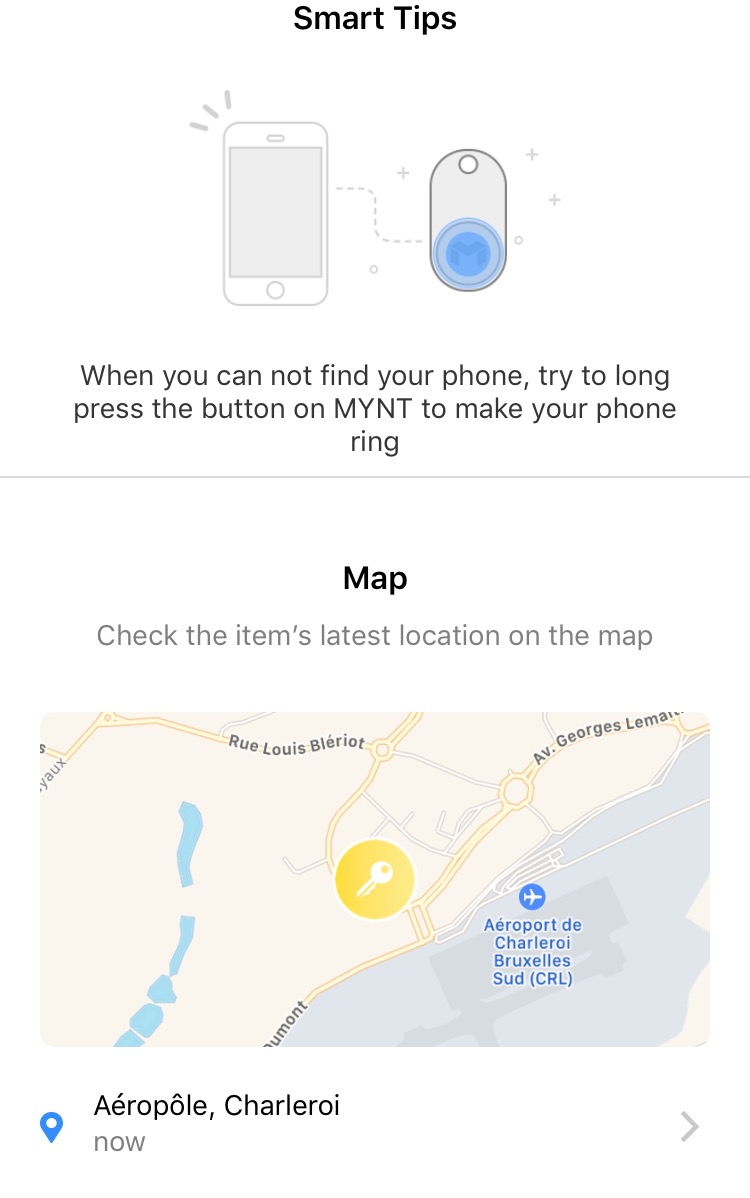 L’application MYNT est disponible en anglais sur l’Appstore et Google Play. L’interface est simple et intuitive et vous permettra de vous y retrouver facilement pour y associer un ou plusieurs porte clés en quelques minutes, en donnant à chacun un petit nom distinctif.