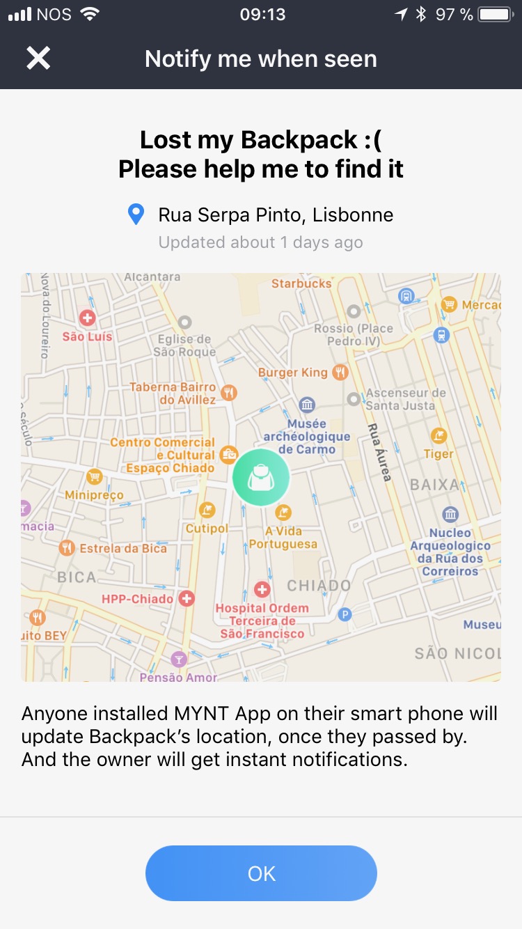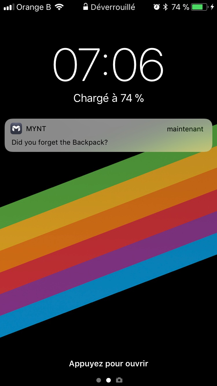 A titre d’exemple, lorsque je me suis rendu à Brussels Airport il y a quelques jours, j’ai laissé mon sac à dos équipé du MYNT en dessous de la table pendant que j’allais chercher mon petit déjeuner. Il n’aura fallu que quelques secondes pour que mon smartphone et ma montre connectée (ça marche aussi) me rappellent à l’ordre en me demandant si il était normal que je m’éloigne sans mon sac ! Terrible non ? Et vraiment utile, surtout pour ceux qui empruntent les transports en commun régulièrement !
