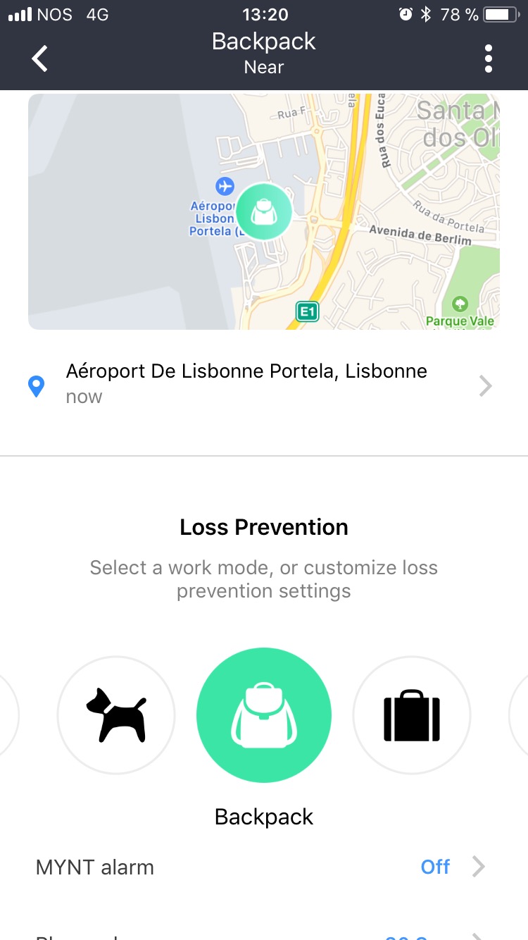 Niveau paramètres, vous pourrez préciser si le MYNT se trouve sur votre sac à dos, dans votre valise, voiture, portefeuille ou encore accroché au collier du chien. Le but est de choisir la prévention voulue suivant le type de support en étant prévenu sur votre smartphone ou en faisant sonner le porte clés si vous les éloignez l’un de l’autre.
