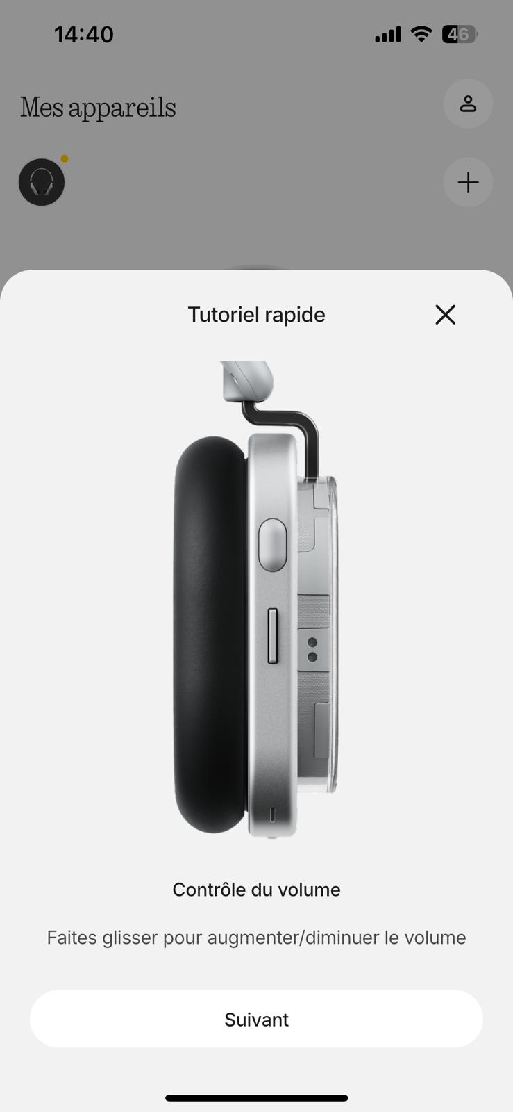 - Réduction de bruit : bas / moyen / haut / adaptatif, mode transparence ou désactivé. Déjà passivement, les coussinets isolent super bien, mais l’ANC va encore plus loin. Petit test : volume à fond → Matyas n’entendait pratiquement rien. Volume normal → moi je n’entendais plus le bruit ambiant. Merci aux trois micros par oreillette.