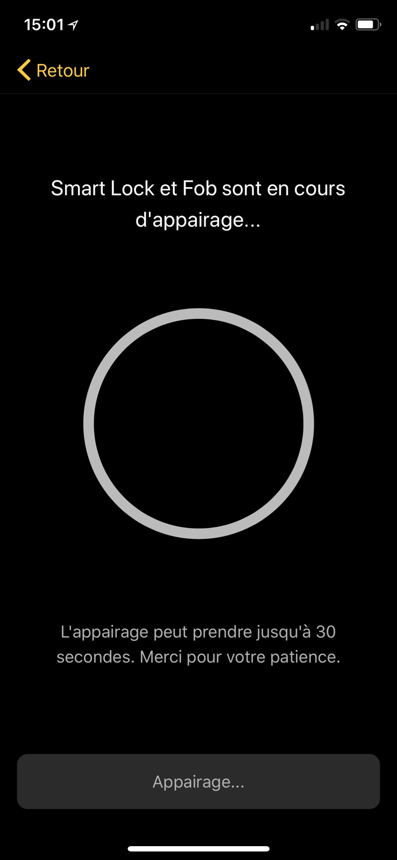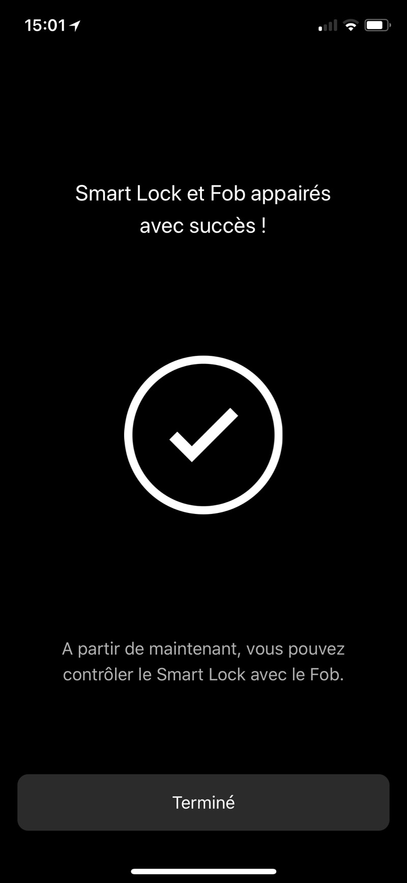 - Le Fob est connecté à la Smart Lock lorsque les témoins ne sont plus allumés ou ne clignotent plus.