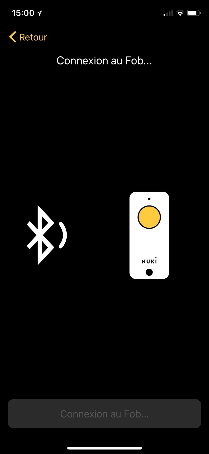 - Approchez le Nuki Fob de la Smart Lock, de façon à être dans le périmètre de couverture du Bluetooth (genre un mètre)