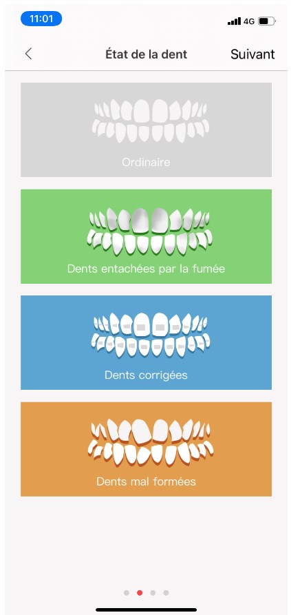 La personnalisation de mon profil est amusante, surtout quand les enfants s’en mêlent. Je découvre grâce à eux, que j’ai des « dents mal formées » et carrément jaunes (pour ma défense, je venais de boire un café). Je peux paramétrer mes habitudes de consommation en indiquant si je fume ou bois du café/thé/vin (ouf que 3 vices sur 4). L’application Oclean propose un programme de nettoyage adapté en fonction de ces données.