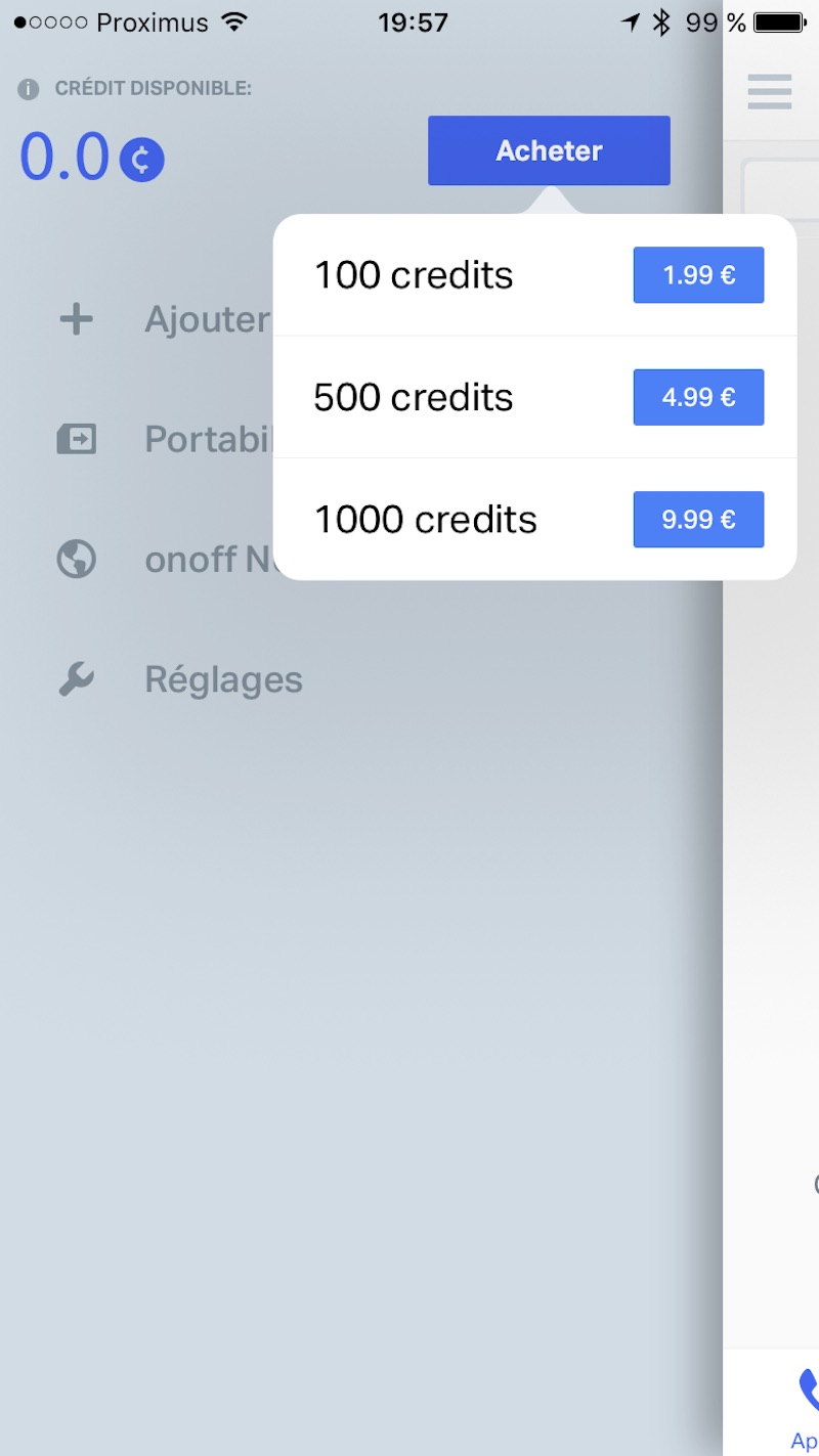 Après un contact rapide avec la community manager de onoff, nous voilà donc en possession d’un numéro belge 0460 21 08 xx (pour obtenir le numéro complet, merci d’effectuer un don de 100€ chaque mois, durant dix ans) . Pour rappel, les appels et SMS émis via cette application seront facturées au tarif de votre opérateur habituel. Bref, aucune surprise, tout est transparent. L’avantage est évidemment de pouvoir obtenir autant de numéros que vous le souhaitez sans avoir à changer de carte SIM. Oui, avec un même téléphone, vous pourrez obtenir, pour 3.99€/mois, un numéro australien, indonésien et péruvien. L’avantage est certain, si vous avez de la famille dans ces pays, ceux-ci ne devront donc pas débourser 5€ la seconde pour vous avertir que le mariage de Juanita ou de Nurul se déroulera lors de l’automne 2017 et qu’il serait temps d’arrêter de dépenser votre argent à d’inutiles objects connectés afin de vous payer un vol digne de ce nom, en n’oubliant pas le cadeau qui fera de vous le plus vénérable des convives.