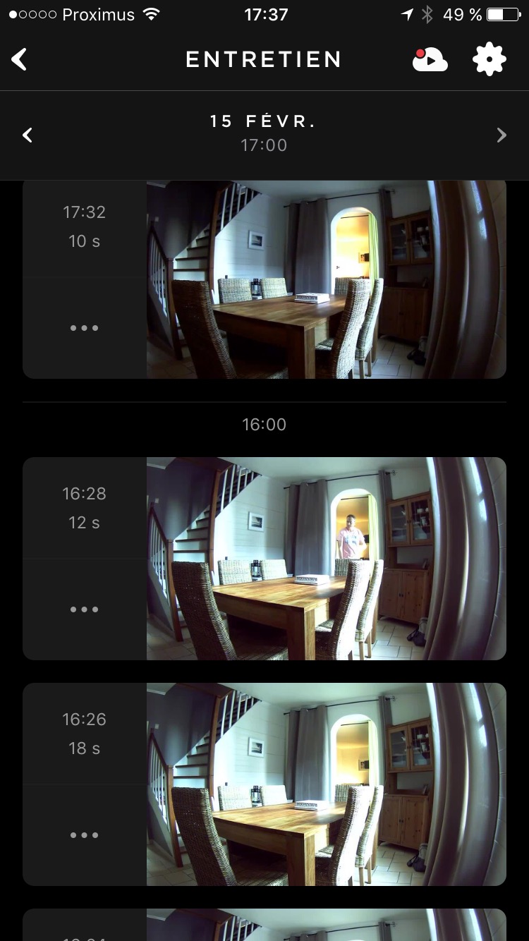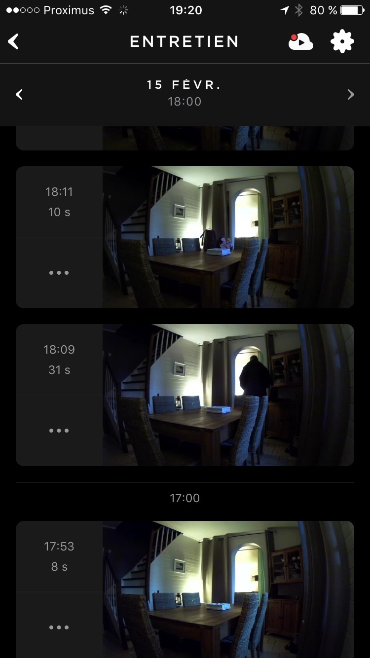 Si vous le souhaitez, vous pouvez activer, depuis votre smartphone, la détection de mouvement et recevoir une notification dés que votre animal se déplace … ou qu’une personne mal intentionnée soit rentrée dans votre maison. Assez réactif, l’alerte génère aussi un enregistrement de la vidéo dans le Cloud. A ce titre, une période de 30 jours d’essai est offerte. Au delà, il faudra vous contenter de quatre heures d’historique ou de passer à un abonnement payant de $10/mois pour 10 jours ou de $30/mois pour un mois d’historique. Si vous souhaitez uniquement être averti en cas de mouvement et garder les dernières heures d’alertes, vous n’aurez donc pas un seul Euro à débourser.