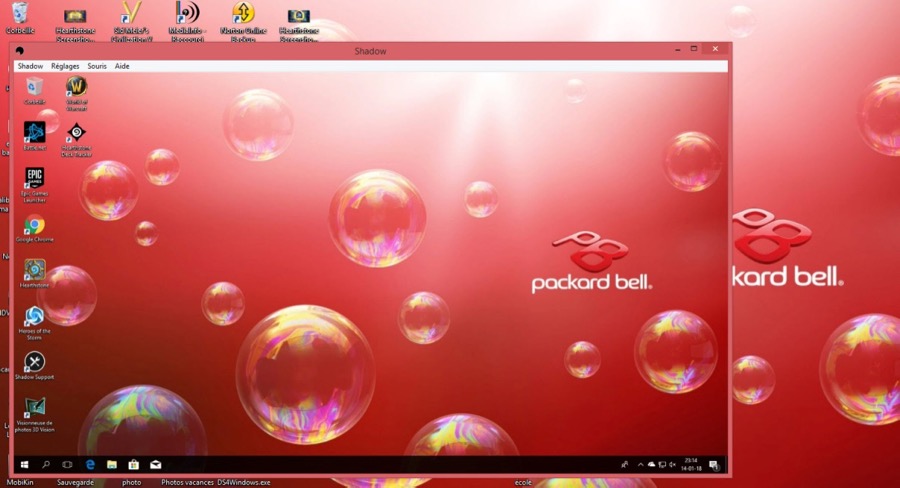 Comme je n’ai pas encore testé la connexion à Shadow via mon téléphone mobile, j’y installe l’application et lance la connexion. C’est petit petit petit petit ! Je fais un tour sur la FAQ et on explique comment augmenter la taille, mais… cela ne fonctionne pas. Persévérant, je poursuis en m’abimant les yeux. Une fois sur mon Shadow, la simulation du clavier s’affiche, mais il ne reconnaît pas le clic sur les touches. Bref illisible, inutilisable. L’Helpdesk (mes nouveaux amis tellement je les contacte en peu de temps) expliquent que je n’ai pas un téléphone conventionnel, entendez par là « vendu en France dans les grandes surfaces ». Ma faute ! J’ai opté pour un téléphone plus puissant vendu en Chine via Gearbest, 4 fois moins cher qu’en France. Il faudra attendre « un peu » pour qu’il soit reconnu dans la multitude de ceux existant mais peu usité par les Français. RIP pour moi le test Mobile.