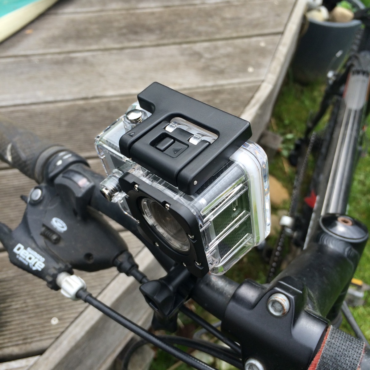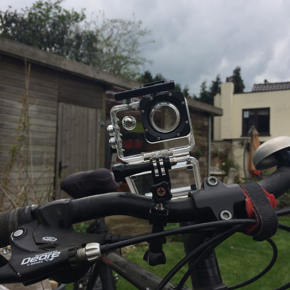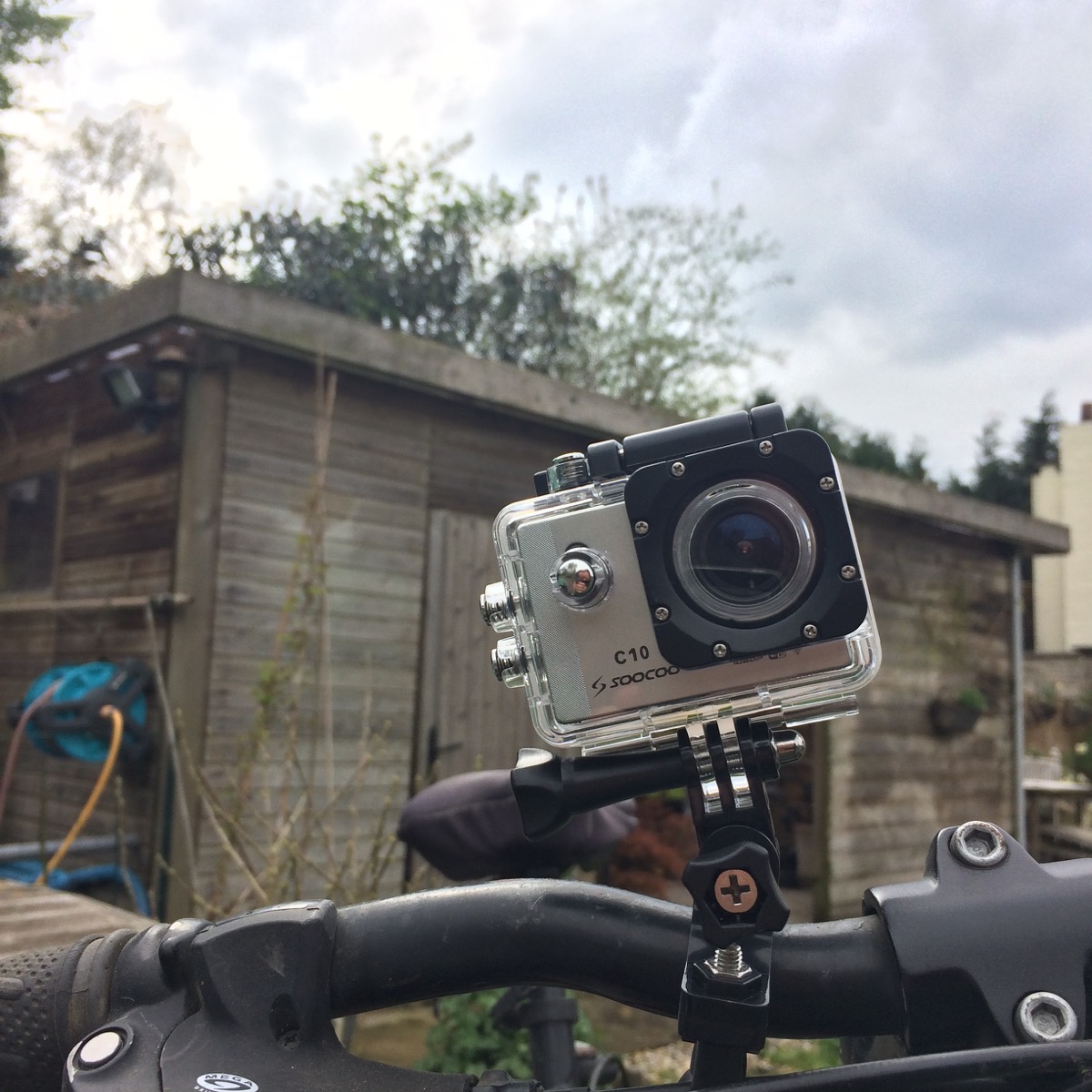 Rien de mieux que d’enfiler mon VTT pour un petit test dans la campagne environnante. Pas simple en ce samedi de trouver quelques minutes sans pluie, bruine ou averse. J’y suis néanmoins parvenu ! Grâce à un ensemble de deux fixations, je suis arrivé en moins de trois minutes à positionner le boitier sur le guidon. Incroyable. Je m’épate moi-même. Le tout tient fermement et nous donne une bonne impression de solidité. Un bouton pour allumer la caméra, un autre pour activer et arrêter l’enregistrement. Grâce à son petit écran LCD, on peut aussi s’assurer qu’on est bien en train de filmer, c’est plutôt pas mal. Evidemment, il vous faudra insérer une carte microSD pour sauvegarder les vidéos (en full HD 1920×1080, au maximum).