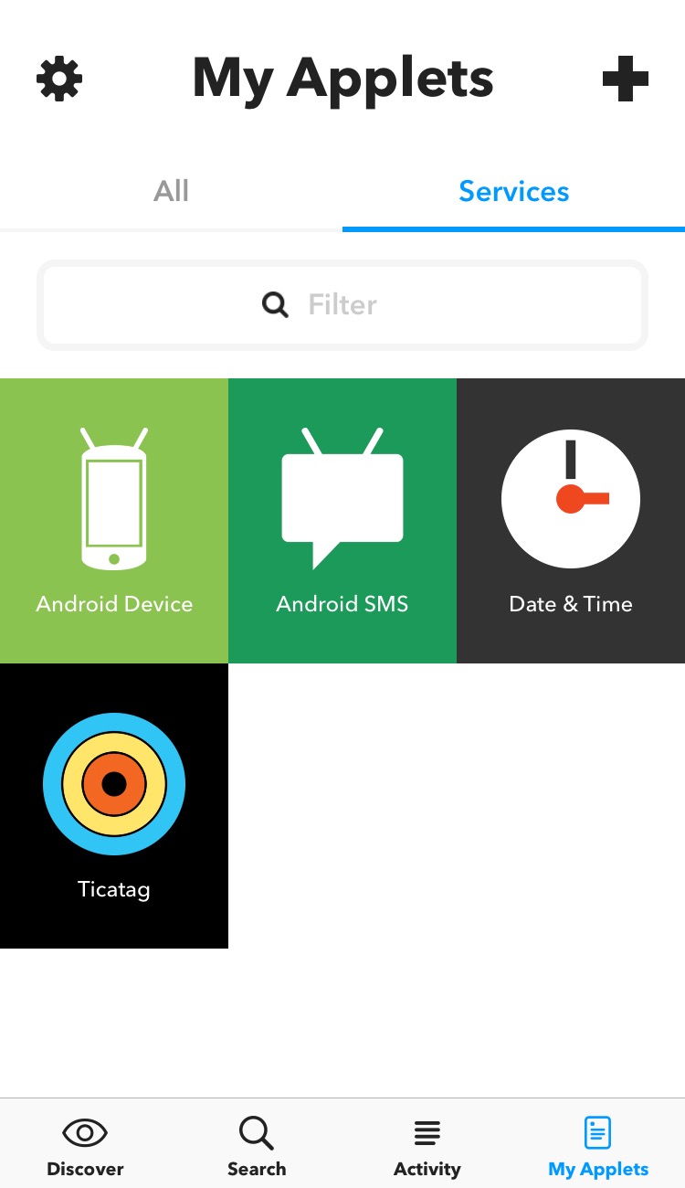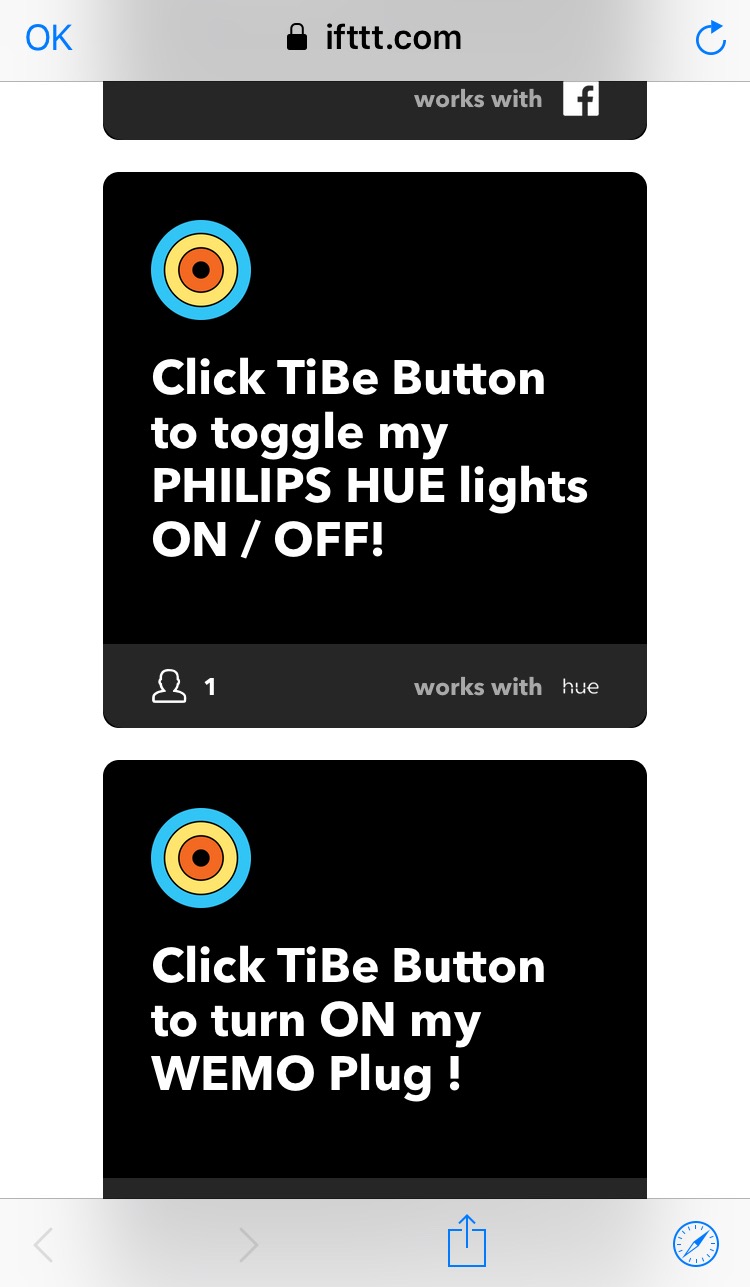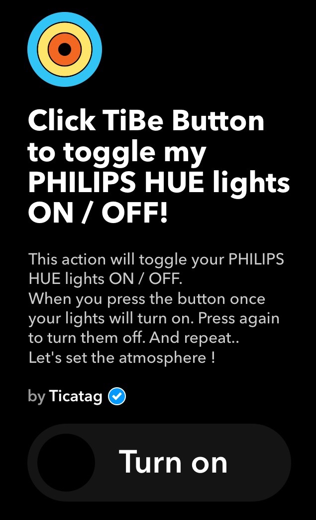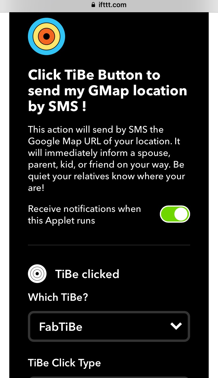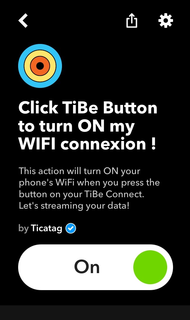 En gros, vous pouvez paramétrer via l’application (IOS ou Androïd) ou directement sur votre Mac/Pc via www.ifttt.com, différentes actions qui, lorsqu’elles sont exécutées, en engendrent d’autres de façon automatique. Vous trouverez un onglet nommé Ticatag entièrement dédié au TiBe et vous donnant le choix entre plusieurs “Applets” ou “recettes” pré-programmés qui sont des automatisations de tâches.