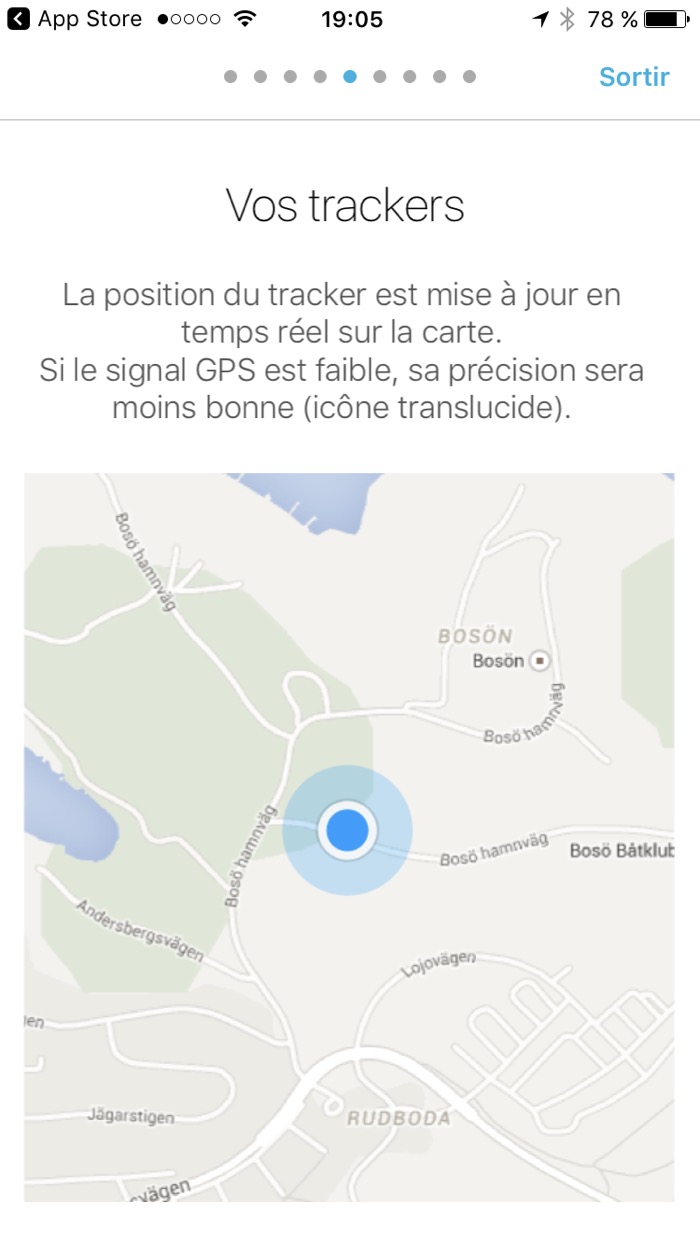 Après avoir téléchargé l’App Trax sur mon iPhone, il m’est demandé de créer un compte et de fournir l’identifiant et le code PIN du Trax. Ces deux éléments sont renseignés sur une petite feuille fournie dans la boite. La magie opère très vite et il faut moins de 5 minutes pour afficher la position du tracker sur mon l’écran de mon smartphone. Bluffant.