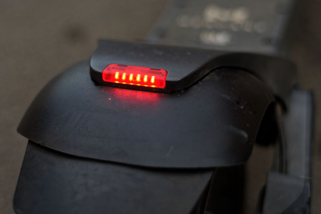 Hormis son look qui lui donne un air de trottinette de Batman, celle-ci est également bien équipée : Deux puissants moteurs de 500W, une grosse batterie 48V de 15Ah, des pneus très larges, pleins et légèrement mous, deux freins à disque avant et arrière, un feu avant et arrière (peu puissants), un garde-boue arrière et deux clés de démarrage. L’autonomie de ce monstre de 23kg atteint plus de 40km en mode « Eco » (35km/h). Quant au plateau, il est long, large et l’antidérapant est efficace.