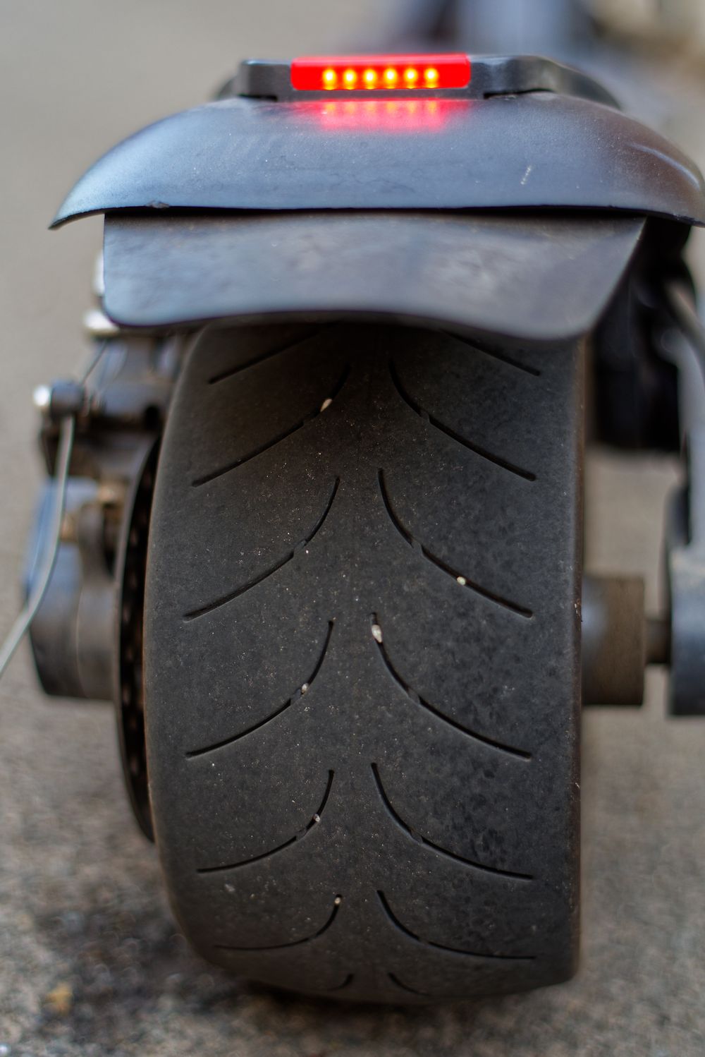 Cette trottinette possède des pneus très larges, certes du plus bel effet et qui donnent l’impression de faciliter la conduite. Néanmoins, la réalité est différente. En effet, le contact au sol est réduit en raison des pneus en forme de “V” qui rend le pilotage difficile et engendre une certaine instabilité dans le bolide à deux roues.