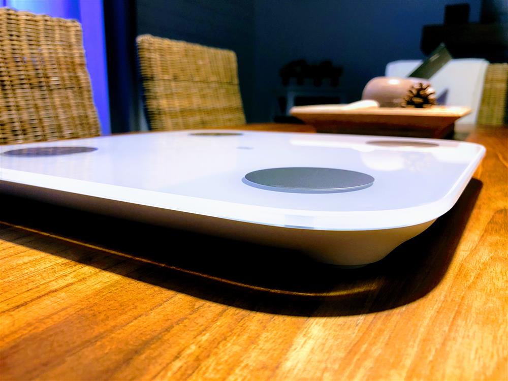 La balance Xiaomi Mi Body 2.0 Composition Scale est follement élégante, voire terriblement féminine, du moins dans sa version blanc nacré aussi douce au toucher que les fesses de … OK, j’arrête. Le pèse-personne repose sur ses quatre pieds antidérapants, tandis que je peux m’apercevoir que le tout est bien assemblé et donne vraiment une impression “premium”, surtout lorsqu’on sait qu’elle est vendue moins de 45€, soit la moitié de ce que propose la concurrence.