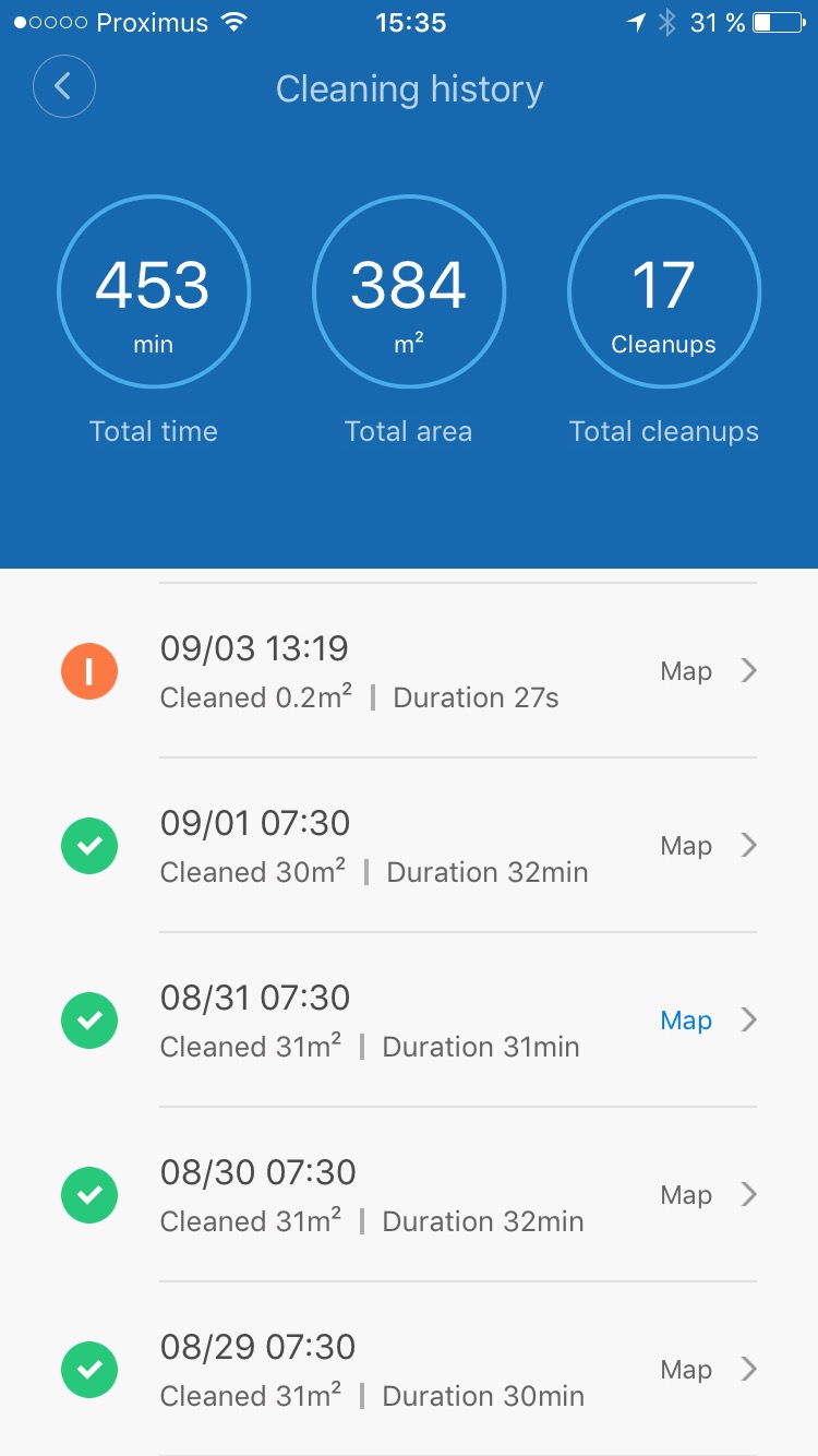 Pour ce test, nous avons tout bonnement demandé, toujours à l’aide de l’App sur mon iPhone, que le robot se lance chaque jour de la semaine, à 7h30, excepté le week-end. Installé dans un confortable hôtel en Haute-Savoie, j’ai pu suivre, à distance, l’évolution de ce Xiaomi Mi Robot. Et vous savez quoi ? En cinq jours, il ne s’est jamais planté une seule fois et est retourné, après une trentaine de minutes de nettoyage, bien sagement sur son dock de recharge.