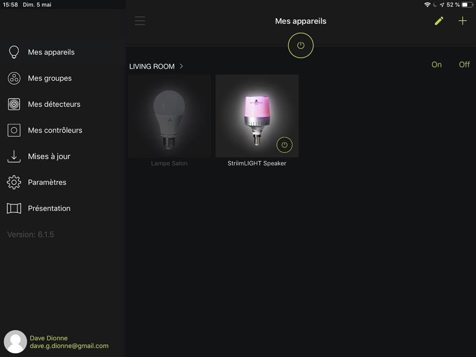 Effectivement, pour partager le contrôle des ampoules avec d’autres smartphones ou tablettes de la maison, il suffit d’installer l’application Awox SmartCONTROL et de se connecter au même compte Cloud créé lors de la première configuration. Tous les objets AwoX connectés de la maison qui sont déjà renseignés seront importés automatiquement dans l’application, sans besoin de redéfinir chacun d’entre eux à nouveau. Vous l’avez compris j’étais dorénavant foutu… j’avais définitivement perdu le contrôle de l’enceinte !