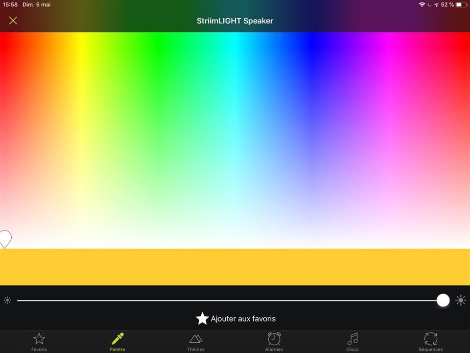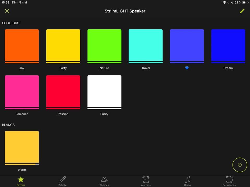 Yes, sur la commode, voilà c’est fait ! En revanche l’appairage ne se passe pas exactement de la même manière avec le StriimLIGHT, dommage ! Il faut en effet passer via les Réglages>Bluetooth de sa tablette ou smartphone et non directement via l’appli SmartCONTROL comme dans le cas précédent où c’était instantané. Bon arrête de rouspéter, c’est comme pour une enceinte Bluetooth standard me direz-vous ?