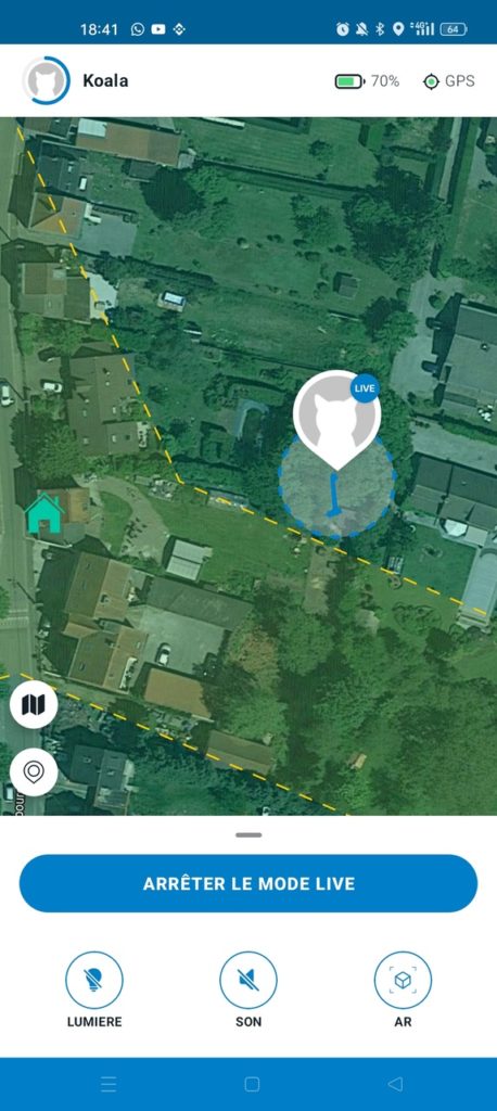 - Le “Live Tracking”: qui permet de suivre Koala à la trace en direct, avec une localisation mise à jour toutes les 2 à 3 secondes