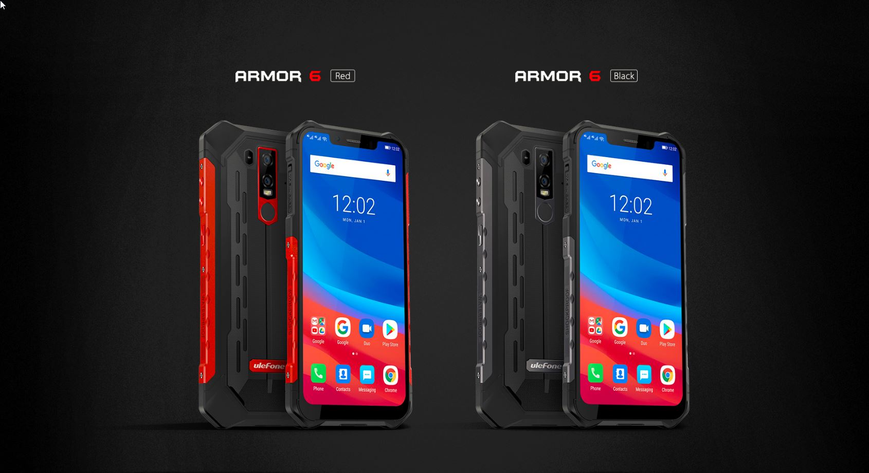 L’Ulefone Armor 6, qui est disponible en deux couleurs (noir ou rouge), tourne sous Android 8.1 Oreo et embarque un processeur Helio P60 Octa base 2.0GHz épaulé par 6Go RAM et 128Go de mémoire extensible jusqu’à 256 Gigas supplémentaires via carte SD.