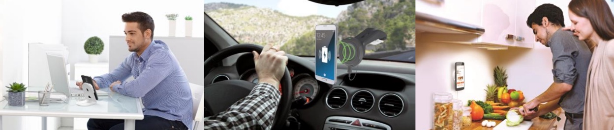 Anticipant la fin annoncée des câbles sur le smartphone, Exelium a conçu une solution de charge unique Up’Mobile comprenant un chargeur sans-fil (qui se fixe soit au mur, soit dans une voiture ou sur le bureau) et un adaptateur magnétique qui se fixe à l’arrière des téléphones déjà équipés de la technologie de charge sans-fil Qi. Ce dernier devient ainsi un relai de charge et de fixation entre le téléphone et le chargeur sans-fil Up’Mobile.