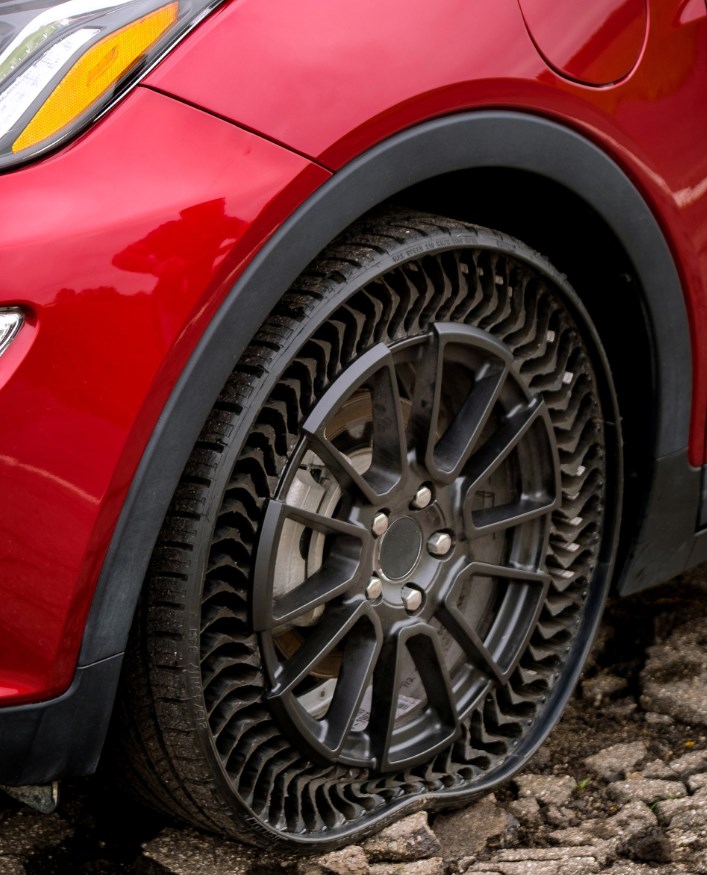 Il faut savoir que 20% des pneus actuellement sur la marché sont condamnés à la décharge pour cause de fuite ou de déchirure. De plus, grâce à cette technologie “Airless”, il sera inutile de passer par la station service pour regonfler vos pneus en perte de pression.