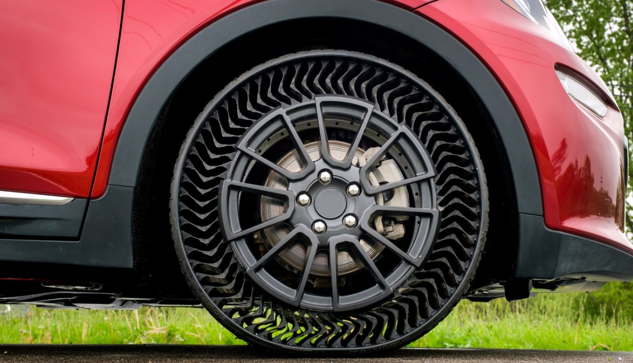 Michelin et General Motors viennent de publier un communiqué assez intéressant pour le commun des automobilistes que nous sommes : La roue qui intègre une couche alvéolée qui ne nécessite pas d’être gonflée. Même si le concept devrait aboutir dans le courant de l’année prochaine, l’objectif du bibendum est d’offrir le pneu increvable en 2024, sur tous les véhicules dits “De tourisme” qui a pour nom de code “Uptis“.