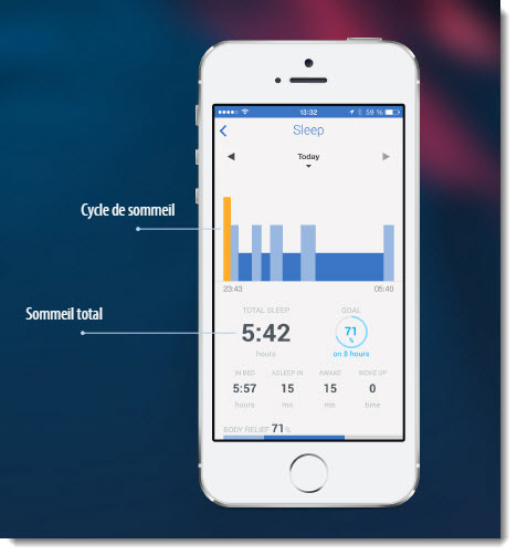 Il est aussi possible de programmer votre endormissement ainsi que votre réveil qui se fera au meilleur moment de votre cycle pour vous réveiller dans une