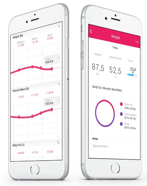Nous retrouvons un nouveau design, accompagné par la batterie de capteurs et de mesures déjà en place sur les versions précédentes : Poids, masse grasse, masse musculaire, masse hydrique (et non alcoolique, désolé) et masse osseuse. A cela, trouvons donc une mesure des ondes de propagation du cœur vers les artères afin d’identifier, entre autre, d’éventuels risques du tension artérielle.