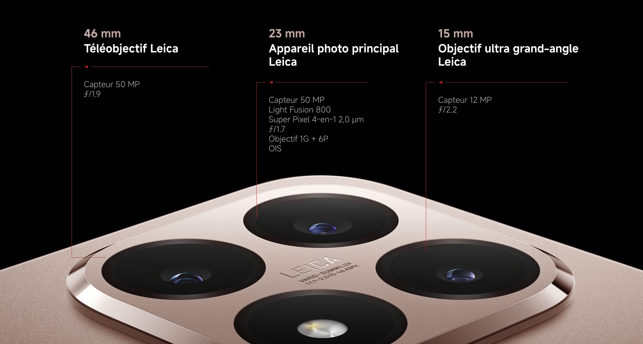 | Appareil photo (arrière) | 50 MP (Light Fusion 800) + téléobjectif 2× + ultra grand-angle 12 MP |