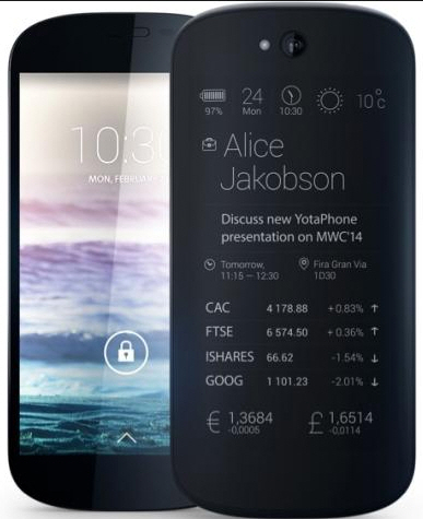 Les innovations en matière de smartphone sont assez rares pour souligner la particularité du Yotaphone, un smartphone provenant de la société russe YotaDevices : Il possède deux écrans, dont l’un est composé exclusivement de E-Ink.