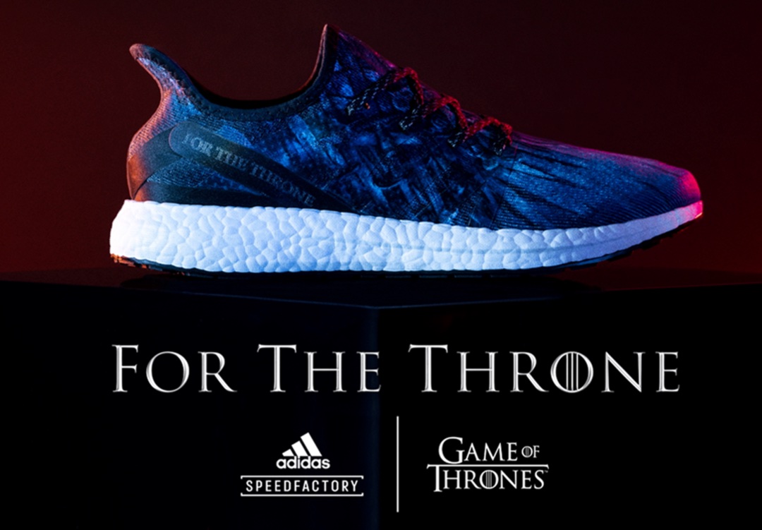 Il s’agit d’une édition limitée de ses chaussures de running “Ultraboost” qui sortira aujourd’hui, ce 25 mai 2019 au prix de 160 €. La sandale de course intègre quelques éléments de la série, notamment un l’impression “For the Thrones” situé au dessus du talon.