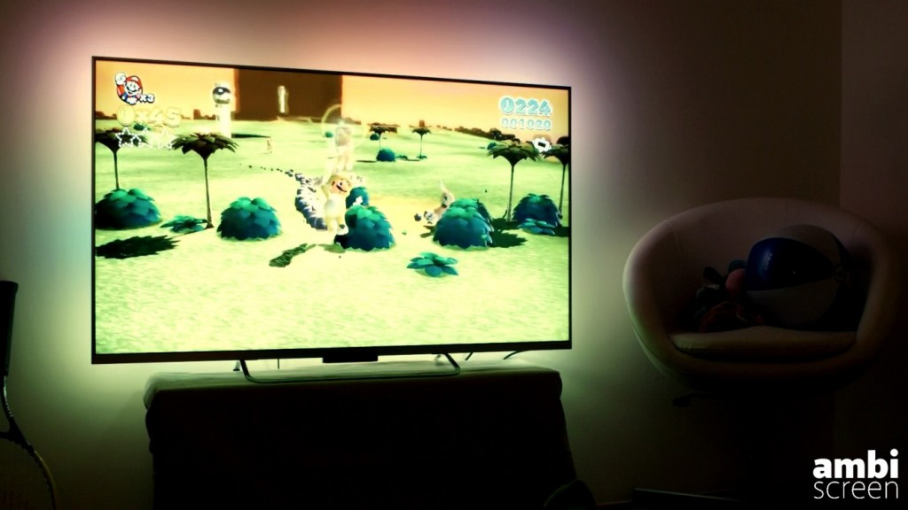 Je suppose que vous connaissez déjà ce système qui diffuse un halo lumineux de couleur autour de votre écran de télévision. Ce procédé d’éclairage ambiant coloré, inventé par Philips, offre une meilleure immersion et vous propose une ambiance de lumière tamisée, diffusée à l’arrière du téléviseur. Evidemment, si vous ne disposez pas d’une TV Philips, vous ne pouvez profiter de ce système… Triste.