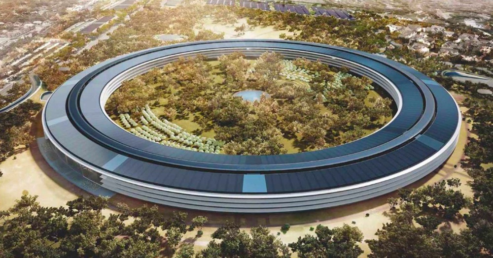Avant de prendre son envol, il serait bien de vous lâcher quelques chiffres sur l’Apple Park. Avec un investissement de 5 milliards de dollars, ce nouveau campus offrira une superficie total de 260.000 mètres carrés, soit l’équivalent de 35 terrains de football. De plus, la totalité de la surface du toit sera équipée de panneaux photo-voltaïque pour atteindre une quasi indépendance énergétique.