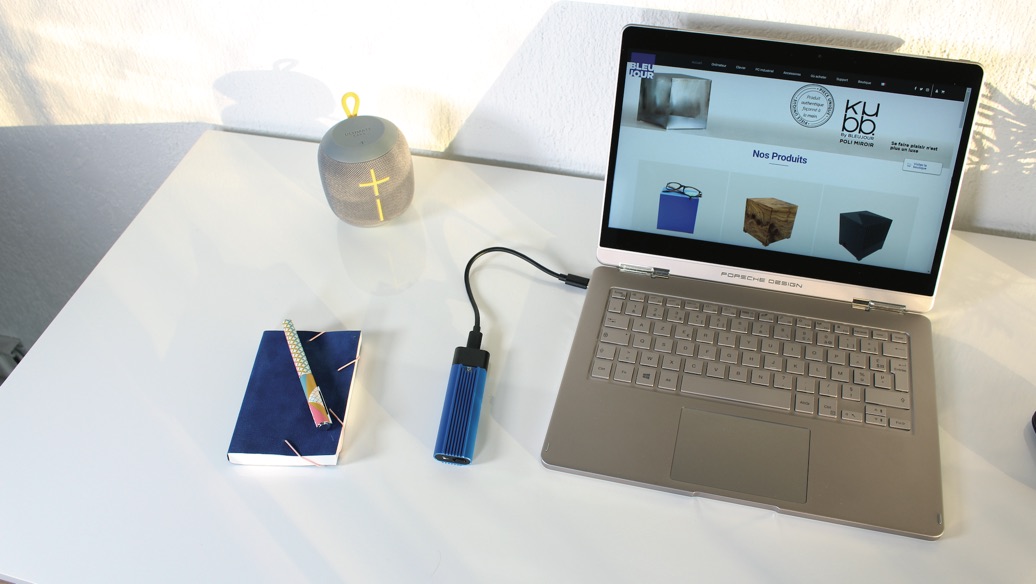 Fort de la réussite du Kubb, un ordinateur original et design ayant la forme d’un cube de 12 cm, BLEUJOUR, fabricant français d’ordinateurs et d’accessoires, annonce l’eSSD à l’attention de tous les globe-trotters qui utilisent quotidiennement leur ordinateur ou tablette : un accessoire design et pratique en USB-C ou USB 3.0 qui permet d’augmenter son espace de stockage jusqu’à 2 To !