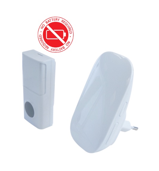 En Belgique, nous recherchons toujours le compromis et c’est bien ce qu’à compris notre Chacon national, basé à Wavre, dans le Brabant-Wallon : Arrêter de se prendre le chou avec les piles. Du côté du carillon (le truc qui va sonner), vous n’aurez qu’à le placer dans une prise de courant. Voilà déjà un problème de réglé. Pour le bouton de sonnette, celui-ci fonctionne au travers d’un élément poussoir auto-alimenté qui, dés qu’on le presse, génère lui-même les petites calories provenant de son svelte corps pour engendrer les quelques ampères qui feront en sorte de réveiller le carillon afin qu’il se redresse allègrement de sa sieste bien méritée (la voisine vient très souvent, vous comprenez). Le couple carillon/bouton de sonnette accepte d’être séparés jusqu’à 100 mètres, de quoi les nouer intimement pour l’éternité. C’est beau, n’est-ce-pas ?