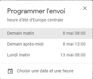 Pas de panique, vous pourrez toujours récupérer la sauce si vous souhaitez renoncer à l’envoi ou encore modifier la date de réception via le lien “Planifié” situé sur la gauche de l’écran !