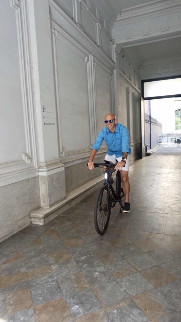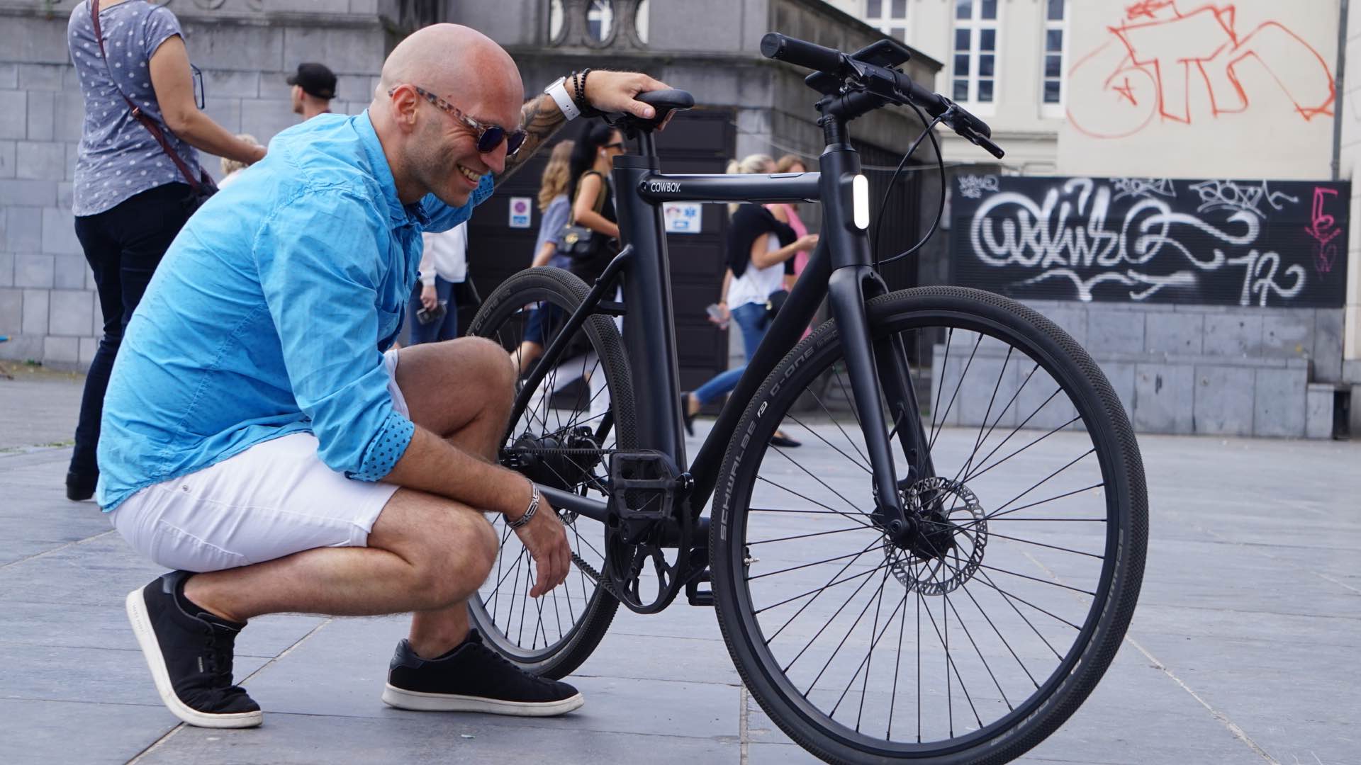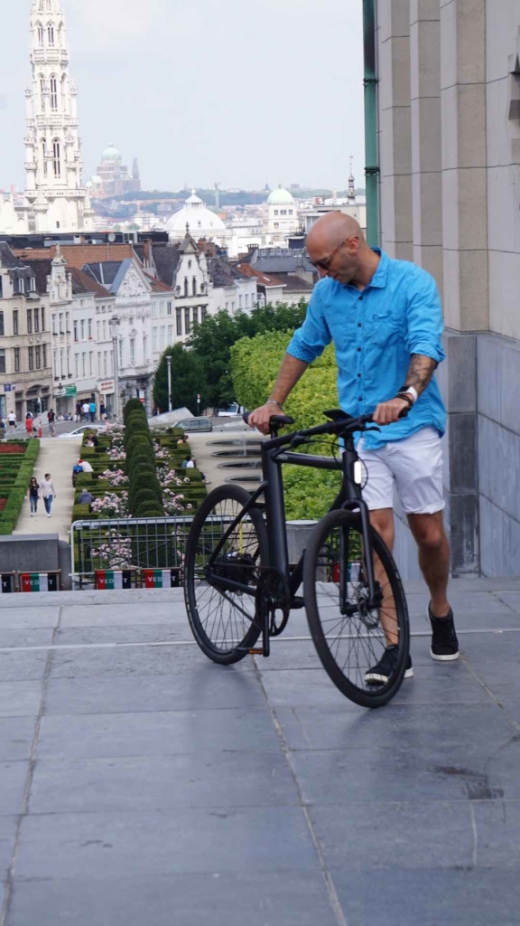 C’est à deux pas de la place Poelaert (bien connue à Bruxelles) dans un immeuble d’artistes, que Mélanie et Nicolas me donnent rendez-vous pour enclencher mes premiers coups de pédales en Cowboy. L’accueil et le cadre (pas celui du vélo) sont chaleureux et, comme promis, bière ou café vous sont proposés en fonction de votre heure d’arrivée. Au premier regard c’est le “waouwwww” assuré ! Le Cowboy, tout de noir vêtu, est juste à tomber et je ne peux m’empêcher de le comparer à un produit provenant de Cupertino tant son élégance et son design innovant m’explosent au visage.