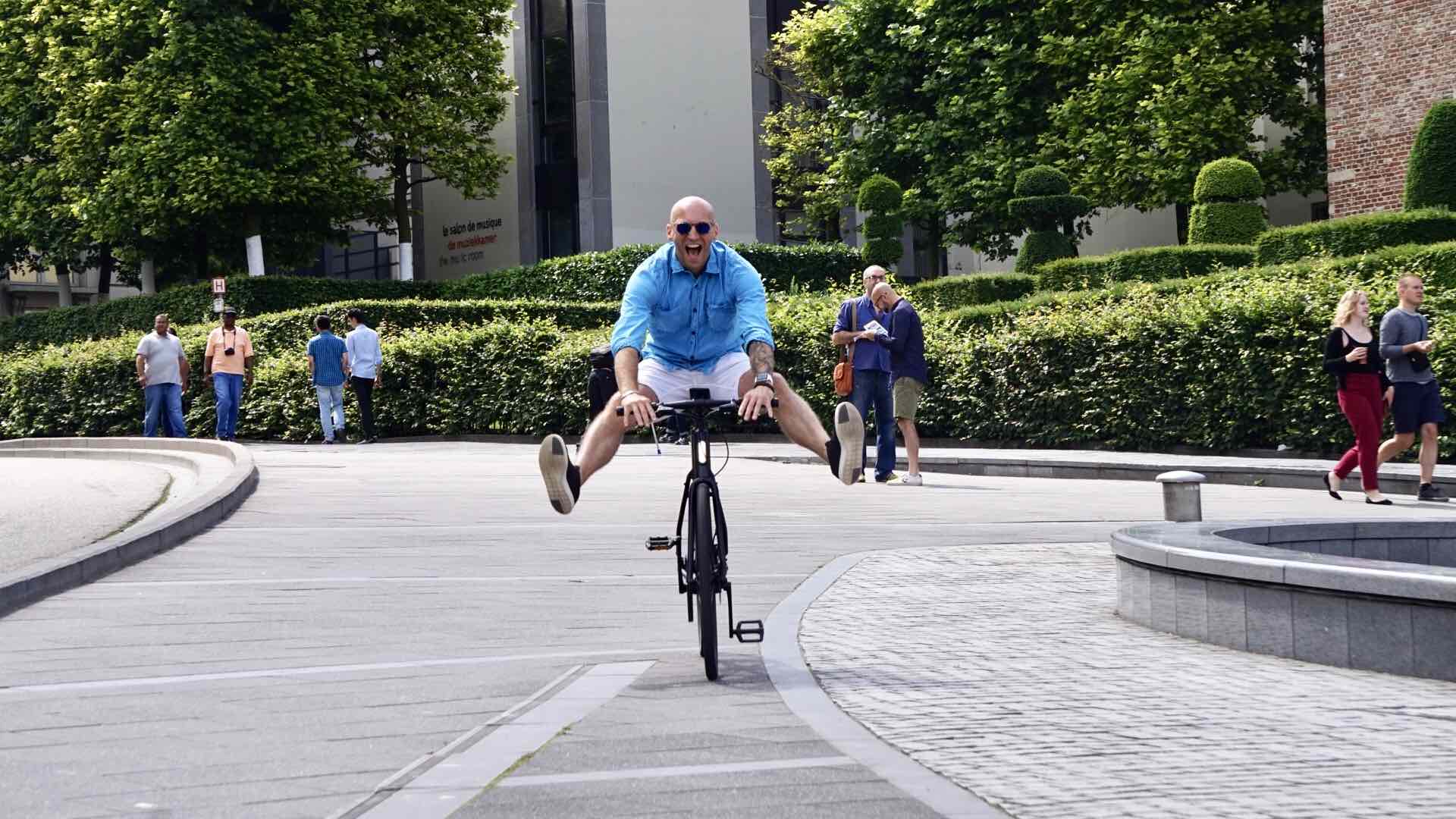 N’ayant jamais utilisé de vélo électrique, c’est avec une facilité déconcertante que je trouve directement mes marques en enfourchant le Cowboy. Le pied à peine posé sur l’étrier, je sens l’assistance électrique me “propulser” gentiment vers la sortie du QG de la startup. Tel la chanson de Gilbert Bécaud, ma guide qui ne se prénomme pas Nathalie mais bien Mélanie, m’emmène vers la place Poelaert connue pour son palais de justice et la réplique culte de notre François l’Embrouille national dans ‘Dikkenek” (Tu sors ou j’te sors..???) pour le début du test grandeur nature du vélo.