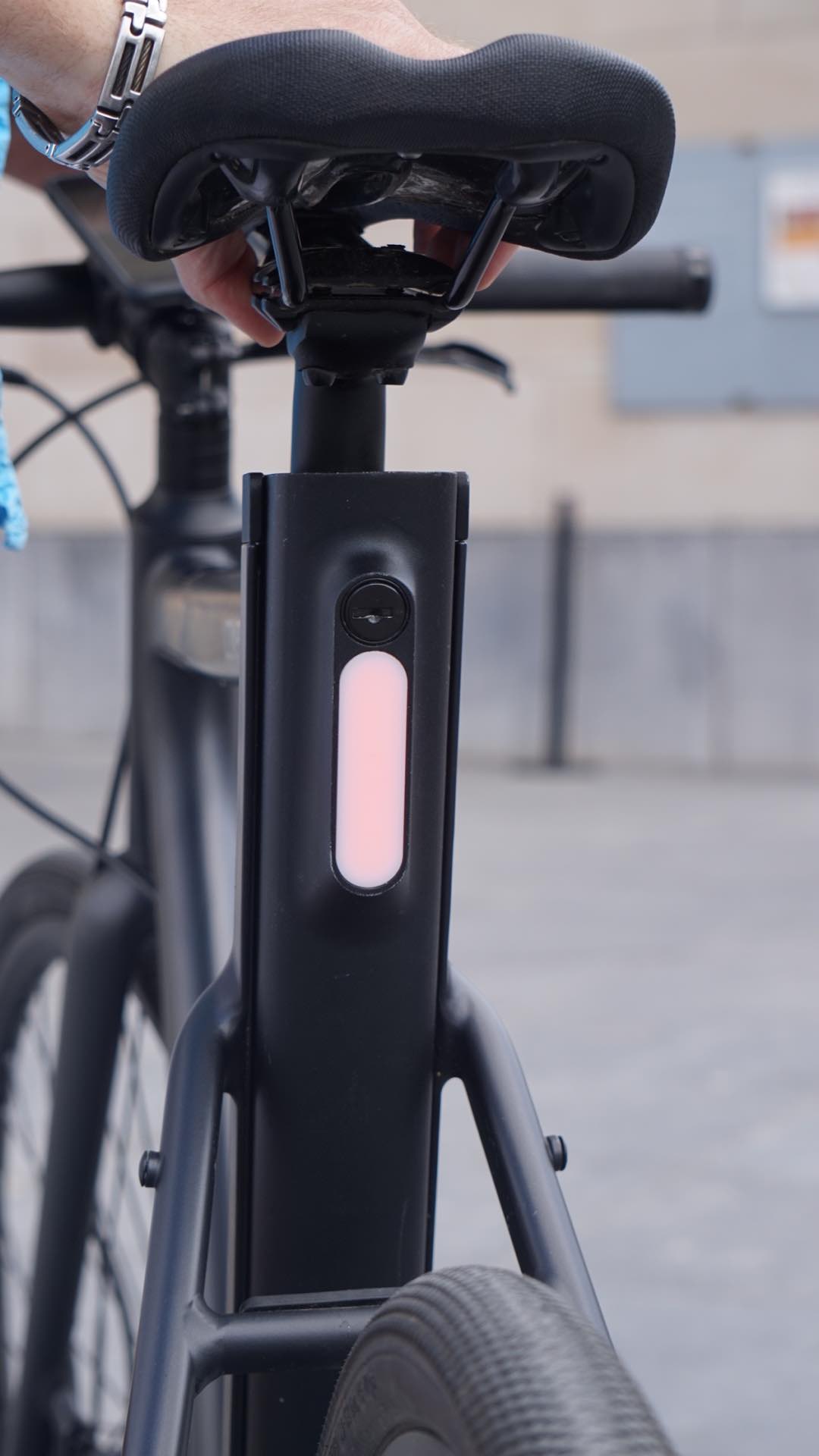 Enfin, le Cowboy, équipé de sa batterie, ne pèse pas plus de 16 kg ce qui fait de lui un des vélos électriques les plus légers du marché. Et puisque l’on parle de batterie, sachez qu’elle est complètement intégrée dans le design du vélo juste en dessous de la selle et qu’il ne lui faudra que 2,5 heures de charge pour vous faire bénéficier d’une autonomie de 50 km. Elle est facilement accessible et ne pèse à elle seule que 1,7 kg. Mélanie me glisse à l’oreille qu’il sera bientôt possible de commander une, voire deux batteries supplémentaires si l’envie de vous taper Knokke vous vient à l’esprit afin de faire un tour sur la digue un dimanche après-midi. A oui j’oubliais, un état d’avancement du niveau de charge est directement intégré sur le cadre du vélo, simple mais efficace.