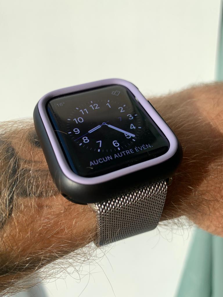 Pour rappel, la CrashGuard NX est compatible avec tous les modèles de l’AppleWatch, de la Série une à la Série quatre en passant par la deux et la trois. L’installation est super simple vu qu’il suffit de glisser le cadran dans la coque et d’y mettre le cadre pour maintenir le tout l’ensemble. A noter que même si RhinoShield précise sur son site que la protection est compatible avec les bracelets officiels Apple, vous pourrez bien sûr utiliser ceux que vous avez acheté dans le péché sur un autre site vu que le bracelet n’est bien sûr pas compris dans le prix.