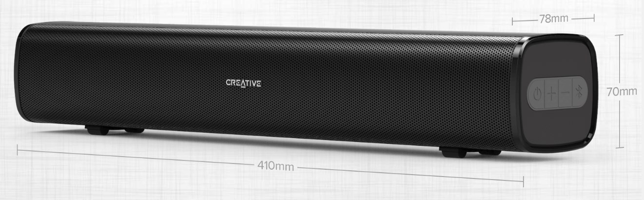 Creative cible donc ce type de personne et nous sort sa Air Stage à un prix assez concurrentiel. La barre de son mesure 41 cm de large pour 7 cm de haut, de quoi la placer aisément sous votre moniteur 4K flambant neuf. La connectique est représentée sous la forme d’une prise jack IN afin d’y brancher votre PC (ou votre smartphone), tandis que l’alimentation est fournie via un simple port micro USB à connecter sur votre PC.