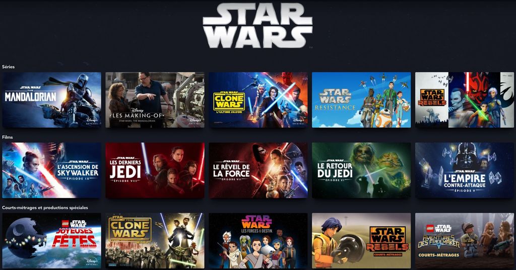 Pour ce prix-là vous possédez cinq « chaînes », à savoir, Disney, Pixar, Marvel, StarWars, National Geographic et, bientôt, Star. Il est assez facile de deviner le contenu des chaînes à leur nom, sauf pour Star, qui regroupera des films, pas forcément de l’univers Disney ou Pixar, mais un large catalogue avec plus de 230 films, plus de 40 séries et 15 documentaires dès le lancement de la chaîne ! N’oublions pas que Disney a racheté la Fox et peut donc accéder à un catalogue de films absolument gigantesque.