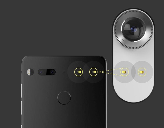 Mais le plus important n’est pas là. En effet, ce brave Andy a pensé modulaire et cet Essential Phone proposera toute une série de plug-ins matériel, comme cette caméra 360 degrés, intégrant deux capteurs de 12 Mpixels à 120 degrés. Fort bien, mais des constructeurs comme Motorola ou encore Google ont essayé de se frayer un chemin dans cette jungle assez pauvre des accessoires et il faudra que les partenaires se bousculent au portillon d’Andy pour que ce nouvel écosystème fonctionne et trouve son marché. Tout reste donc à créer.