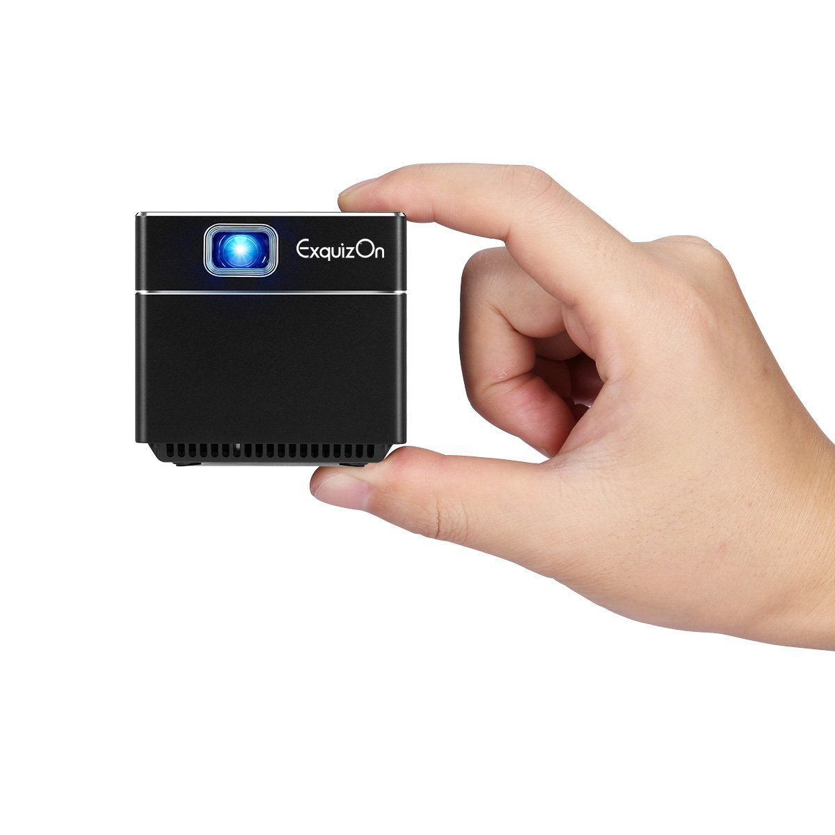 L’Exquizon S6 est un mini projecteur de poche en forme de cube arborant des dimensions minimalistes de 5,5 x 5,5 x 5,5cm pour un poids plume de 173 grammes qui est, à titre d’exemple, la norme standard pour la plupart des smartphones actuels.