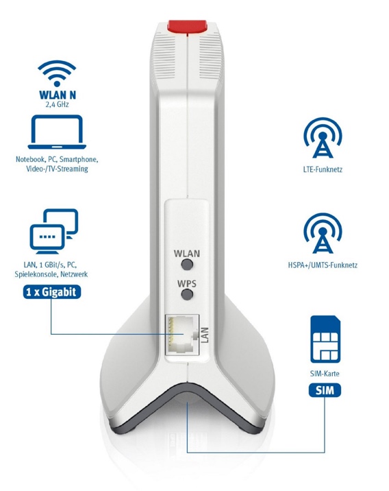 En outre, vous pouvez facilement effectuer une sauvegarde des connexions haut débit existantes. Grâce à ce modem, vous profitez de l’Internet mobile rapide dans toute l’Europe, y compris dans les zones isolées où il n’y pas de connexion haut débit ou lorsqu’elle est trop faible. Que vous vous rendiez au travail en voiture, en train ou même en bateau, la FRITZ!Box 6820 LTE remplace parfaitement votre connexion fixe.